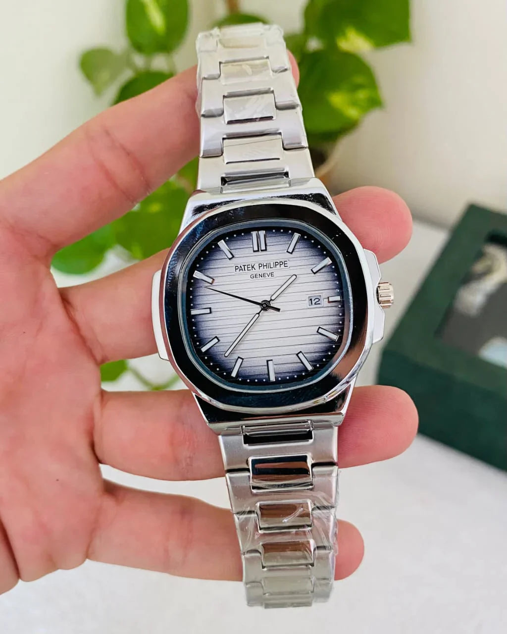 🔹 Classic Nautilus Design with a sleek, brushed silver dial and luminous hour markers